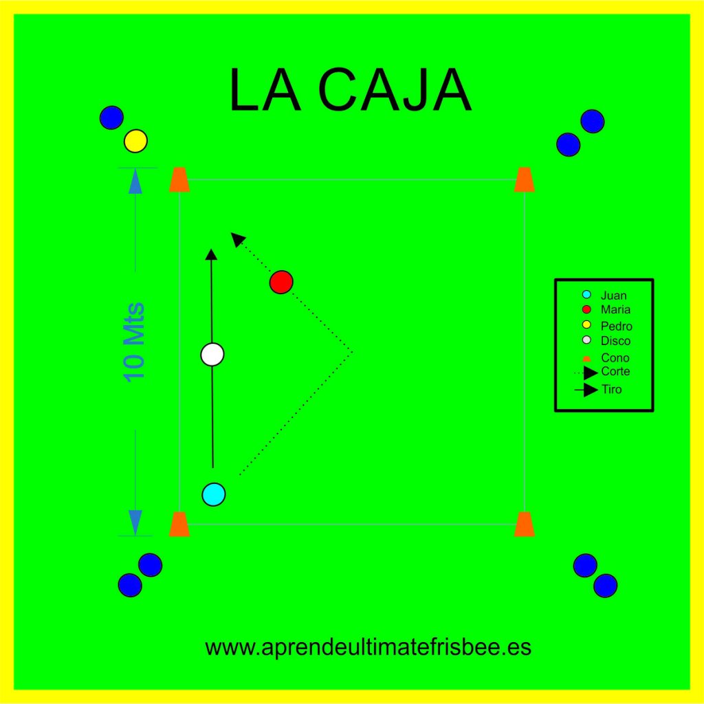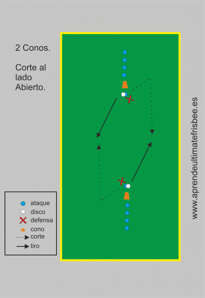 Materiales: 2 Conos ubicados a unos 25 mts entre ellos. 2 Frisbees mín imo (1 en cada cono). 3
